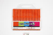 Water-based, semi-opaque markers in excellent robust quality and with very intense colours. Ventilated safety lids. Suitable for white absorbent surfaces such as paper, cardboard, colouring books etc. Colortime Markers, orange, line 2 mm, 18 pc/ 1 pack