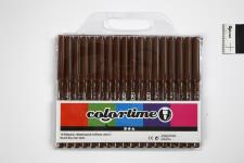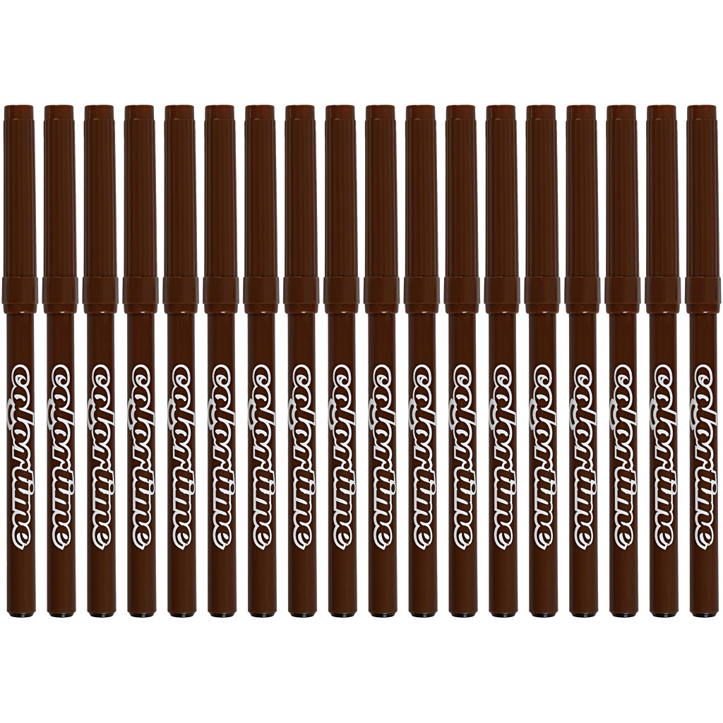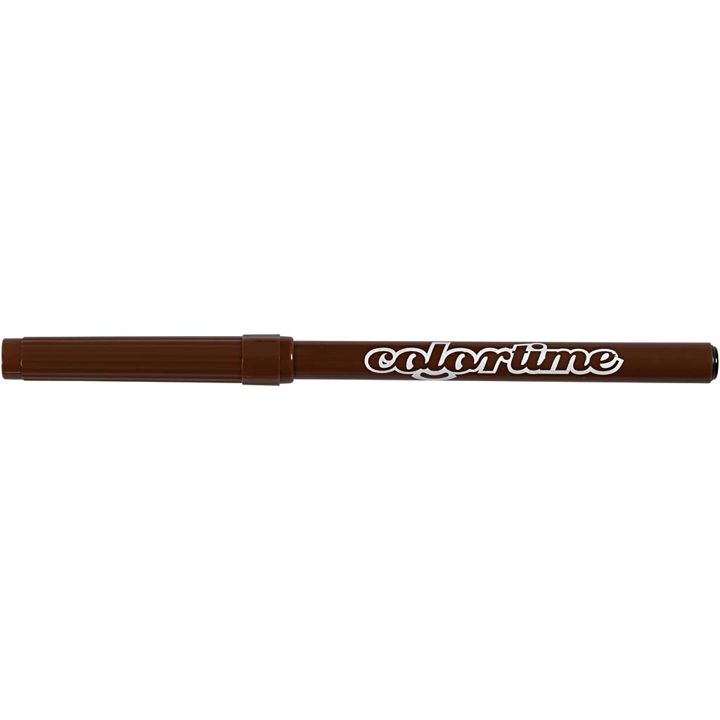 Water-based, semi-opaque markers in excellent robust quality and with very intense colours. Ventilated safety lids. Suitable for white absorbent surfaces such as paper, cardboard, colouring books etc. Colortime Markers, brown, line 2 mm, 18 pc/ 1 pack