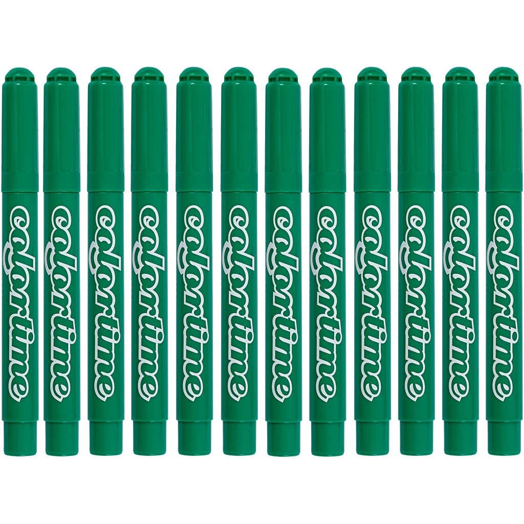 Water-based, semi-opaque markers in excellent robust quality and with very intense colours. Ventilated safety lids. Suitable for white absorbent surfaces such as paper, cardboard, colouring books etc. Colortime Markers, clear green, line 5 mm, 12 pc/ 1 pack