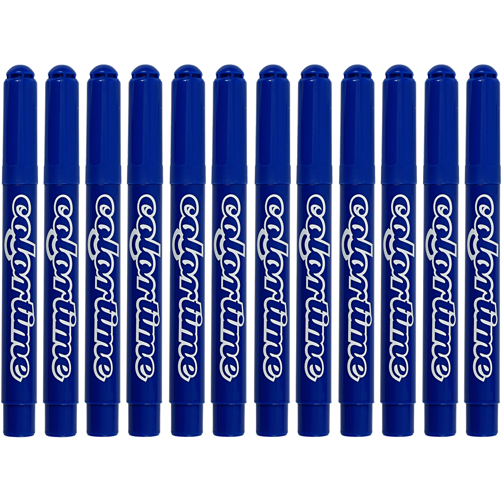 Water-based, semi-opaque markers in excellent robust quality and with very intense colours. Ventilated safety lids. Suitable for white absorbent surfaces such as paper, cardboard, colouring books etc. Colortime Markers, blue, line 5 mm, 12 pc/ 1 pack