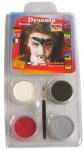 Starter kit with water-based quality makeup from Eulenspiegel. Colours may be mixed, applied with a brush or sponge and washed off with soap and water. Make-up for about 40 faces. Content: 4 Colours each of 3,5 ml, 1 pc. brush and guidance. Eulenspiegel Face Paint - Motif Set, assorted colours, dracula, 1 set