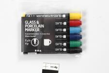 Semi-opaque, water-based marker with a fixed felt tip for glass and porcelain. Once cured in the oven, the item is dishwasher safe on mild cycles. Glass and Porcelain Markers, line 1-3 mm, semi opaque, 6 pc/ 1 pack