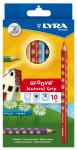 Ergonomic, triangular shaped coloured pencils with natural grip-zone and bonded lead. Groove Colouring Pencils, assorted colours, L: 18 cm, lead 4.25 mm, 10 pc/ 1 pack