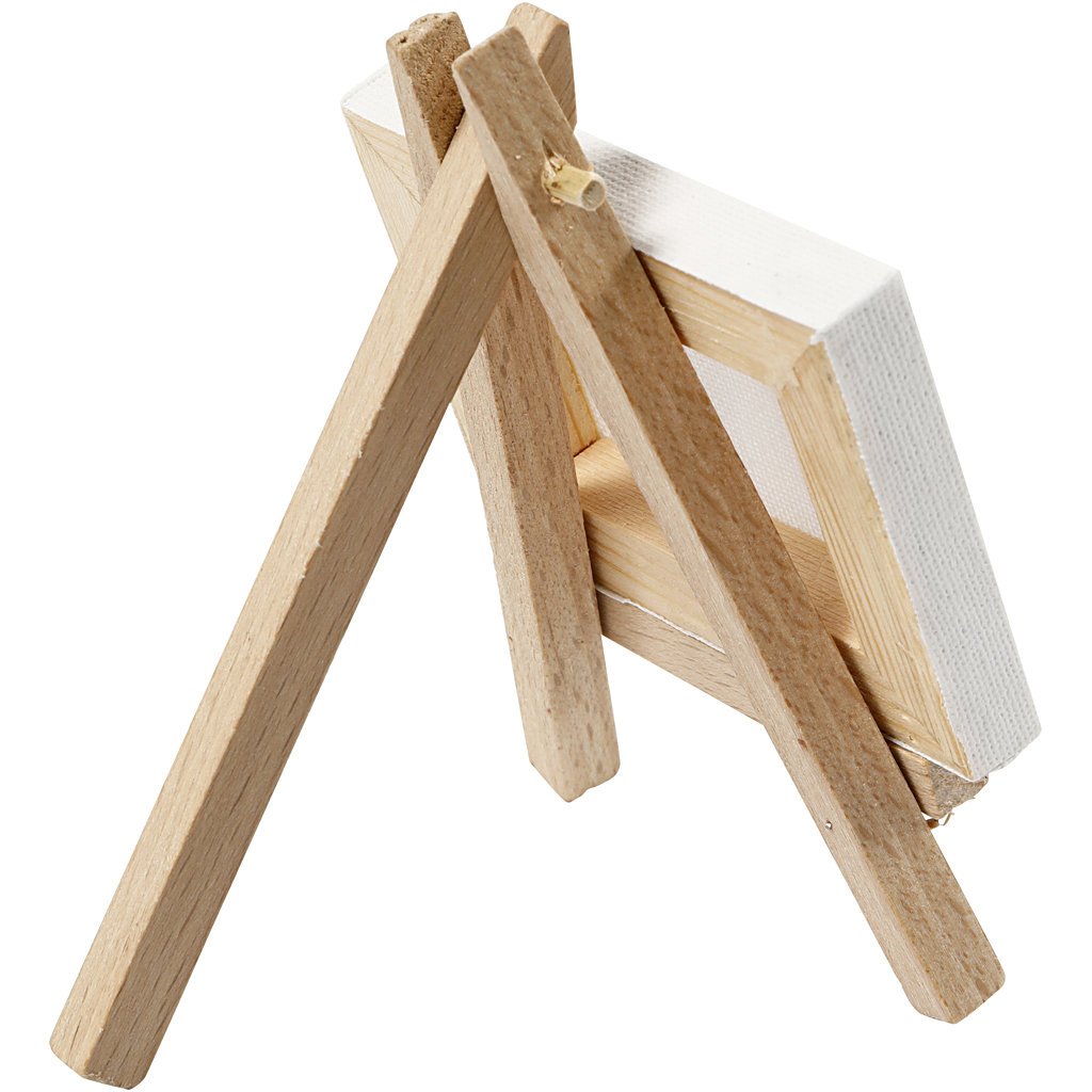 Small easel with small detachable canvas. Mini Easel with canvas, white, size 8x6x1 cm, H: 11,5 cm, W: 8 cm, 1 pc