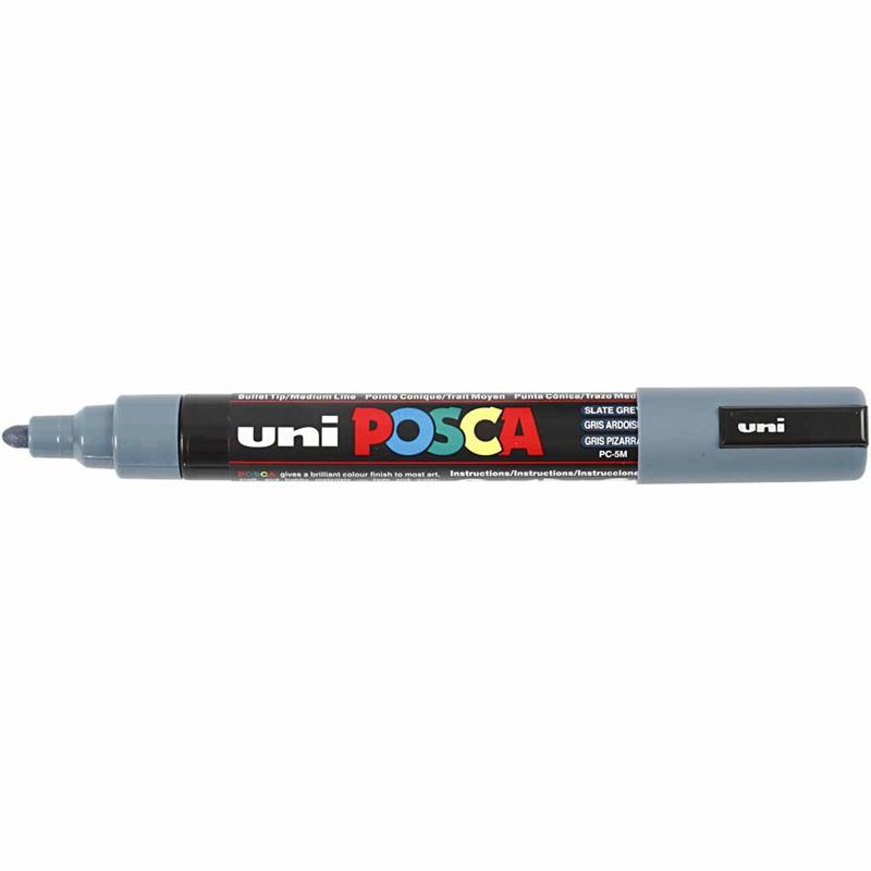 Water-based, opaque and permanent marker for both smooth and porous surfaces - eg. glass, metal, textile, plastics, etc. Posca Marker, slate grey, line 2,5 mm, 1 pc