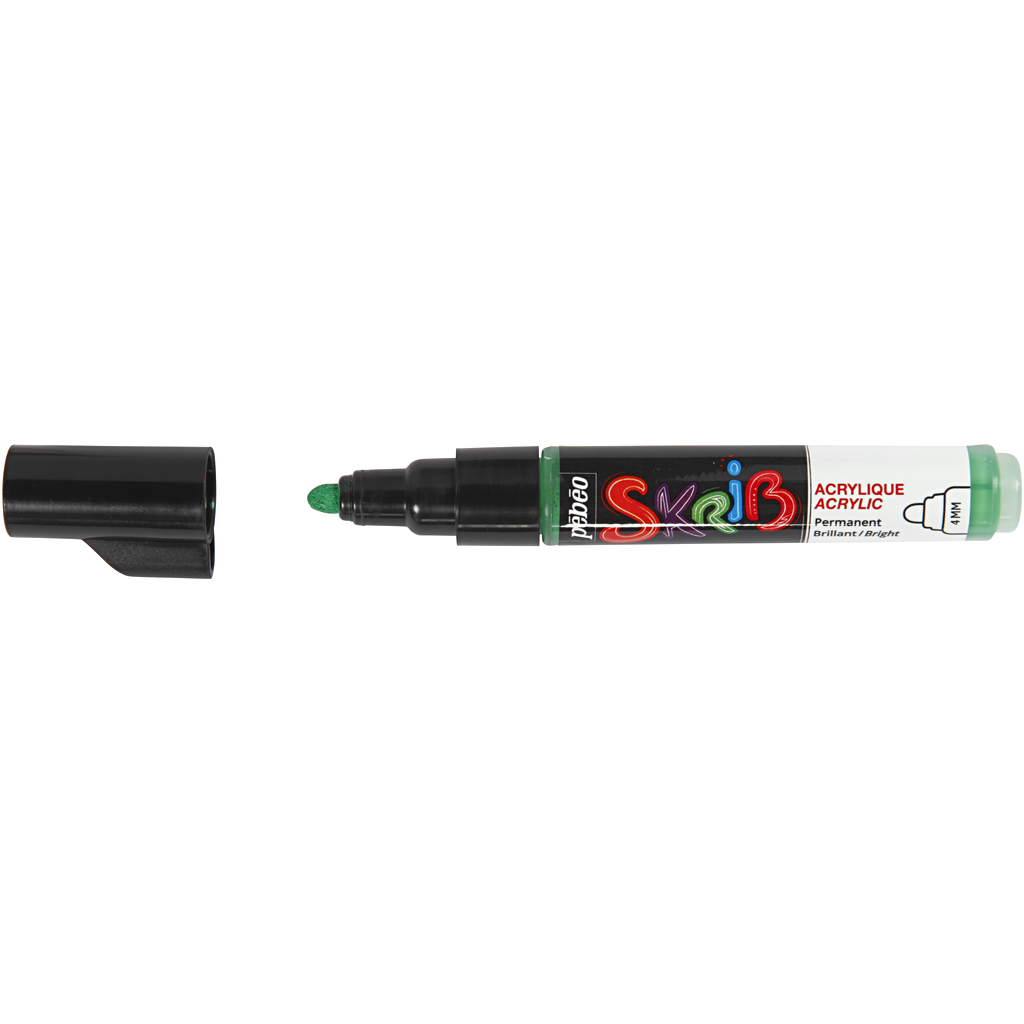 Water-based, fully covering, gloss acrylic paint marker. Can be used on both dark and light items with all sorts of materials, such as wood, cardboard, metal, earthenware, glass, plastic, stone and the like. Shake before use, so that the paint is wel. Skrib Paint Marker, black, blue, red, yellow, line 4 mm, 4 pc/ 1 pack