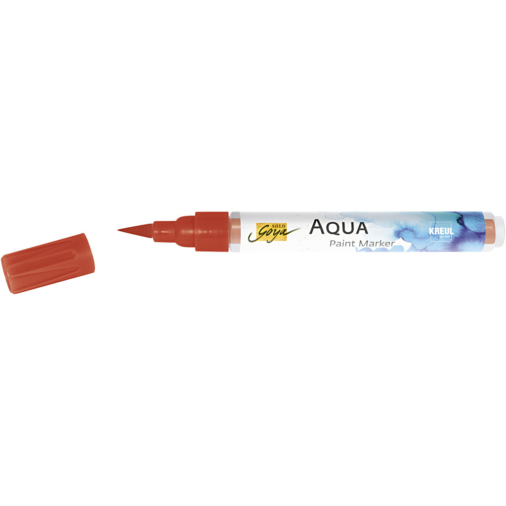 SOLO GOYA Aqua Paint Marker contains high quality liquid watercolour. The colour is applied with the elastic brush tip onto dry or wet watercolour paper. The colours can be faded and blended to your chosen expression using a brush and water. Use this. SOLO GOYA Aqua Paint Marker, carmine, 1 pc