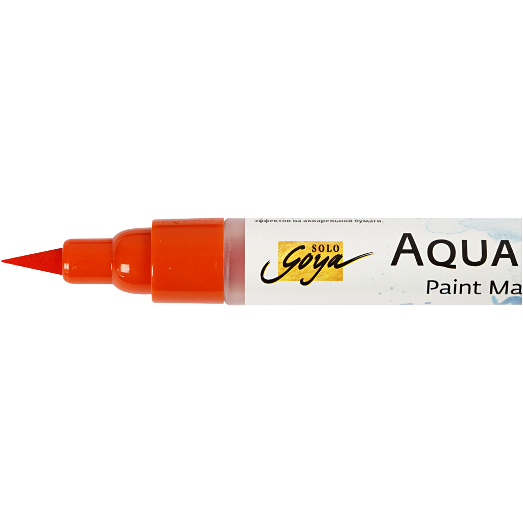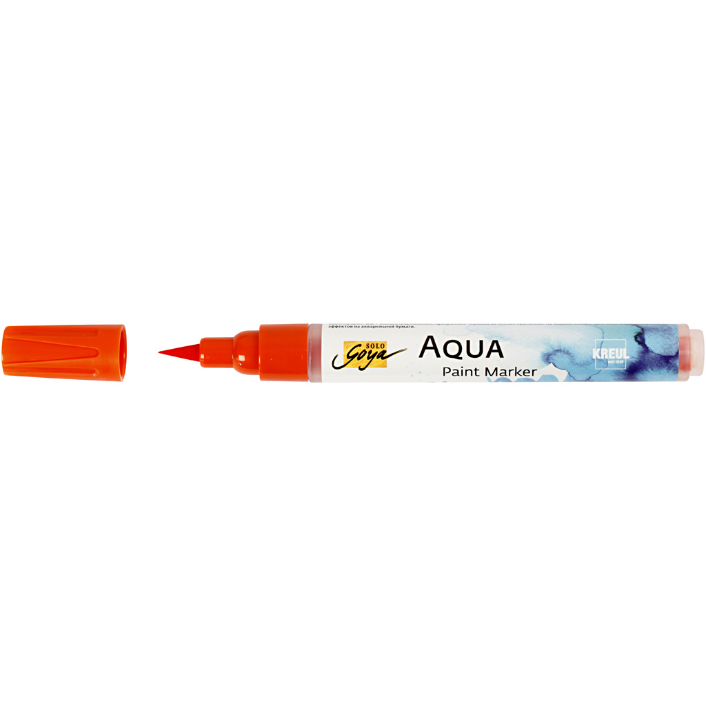 SOLO GOYA Aqua Paint Marker contains high quality liquid watercolour. The colour is applied with the elastic brush tip onto dry or wet watercolour paper. The colours can be faded and blended to your chosen expression using a brush and water. Use this. SOLO GOYA Aqua Paint Marker, orange, 1 pc