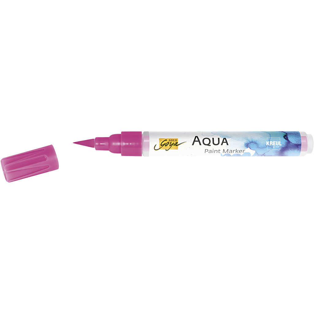 SOLO GOYA Aqua Paint Marker contains high quality liquid watercolour. The colour is applied with the elastic brush tip onto dry or wet watercolour paper. The colours can be faded and blended to your chosen expression using a brush and water. Use this. SOLO GOYA Aqua Paint Marker, magenta, 1 pc