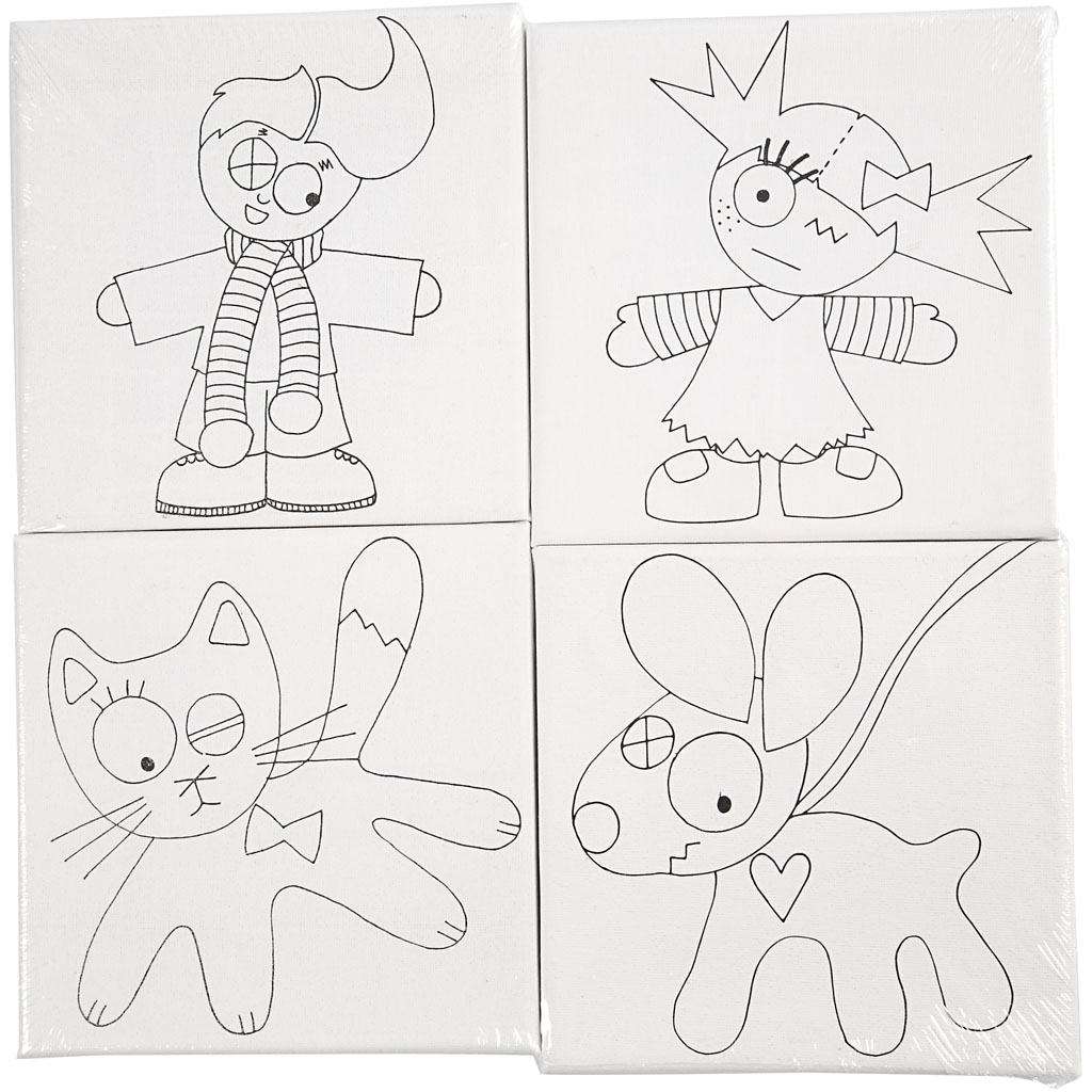 Good quality stretched cotton canvas - stapled on the reverse - pack contains different print designs. Stretched Canvas With Print, 4 pc/ 1 pack