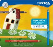 Lyra premium quality triangular shaped coloured pencils with bonded lead. Super Ferby 1 colouring pencils, assorted colours, L: 18 cm, lead 6,25 mm, 18 pc/ 1 pack
