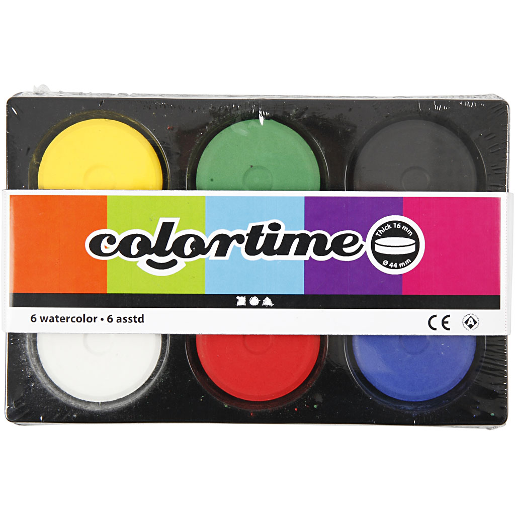 Transparent tempera watercolours in block form and with fine pigment content. Watercolours, primary colours, H: 16 mm, dia. 44 mm, 1 pack