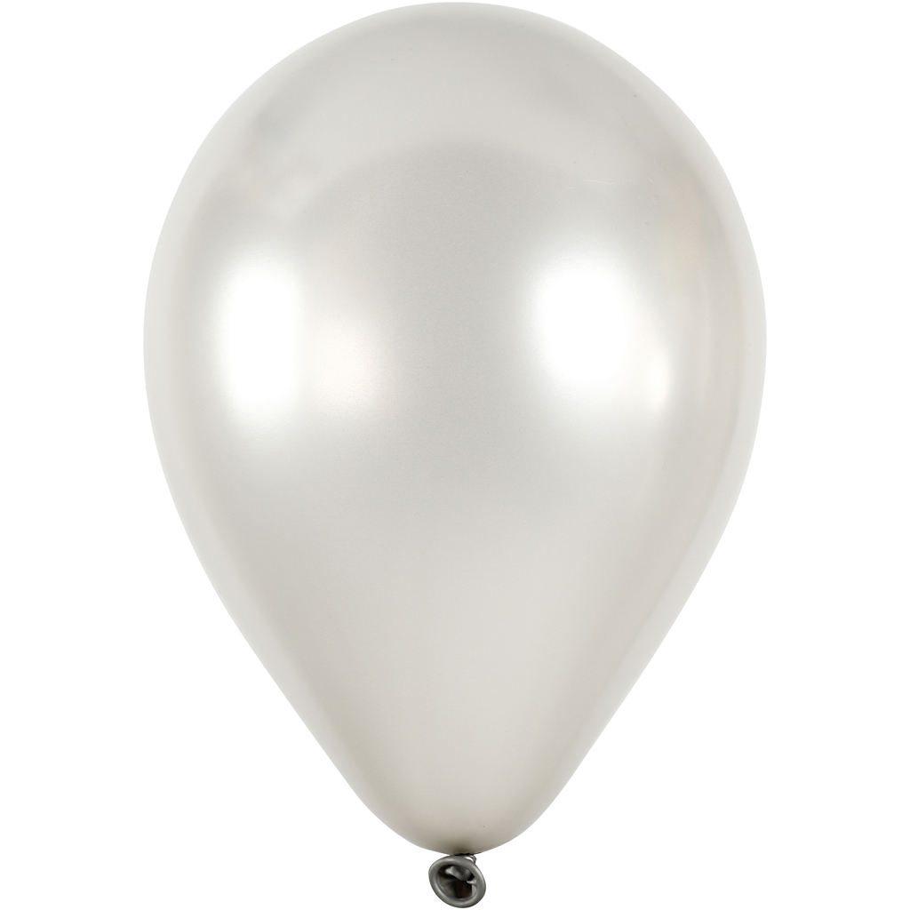 Solid coloured, round balloons of natural rubber. Suitable for helium and will have an inflated time of approx. 4 hours. Balloons, silver, round, dia. 23 cm, 8 pc/ 1 pack