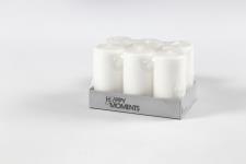 Candles made of 100% refined paraffin (mineral oil) and dipped with color. Burning time is approx. 21 hours. Candles, white, H: 100 mm, dia. 50 mm, 6 pc/ 1 pack
