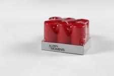 Candles made of 100% refined paraffin (mineral oil) and dipped with color. Burning time is approx. 21 hours. Candles, red, H: 100 mm, dia. 50 mm, 6 pc/ 1 pack