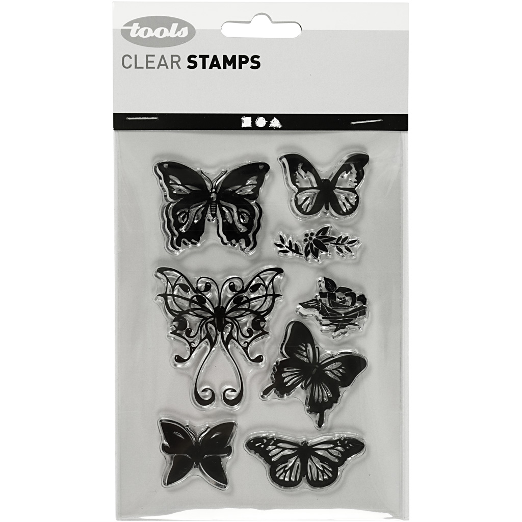 Sheets with different motives of transparent silicone. Mounted on acrylic block (item no. 21586, 21587 or 21588) and used as a stamp. Clear Stamps, butterflies, 11x15,5 cm, 1 sheet