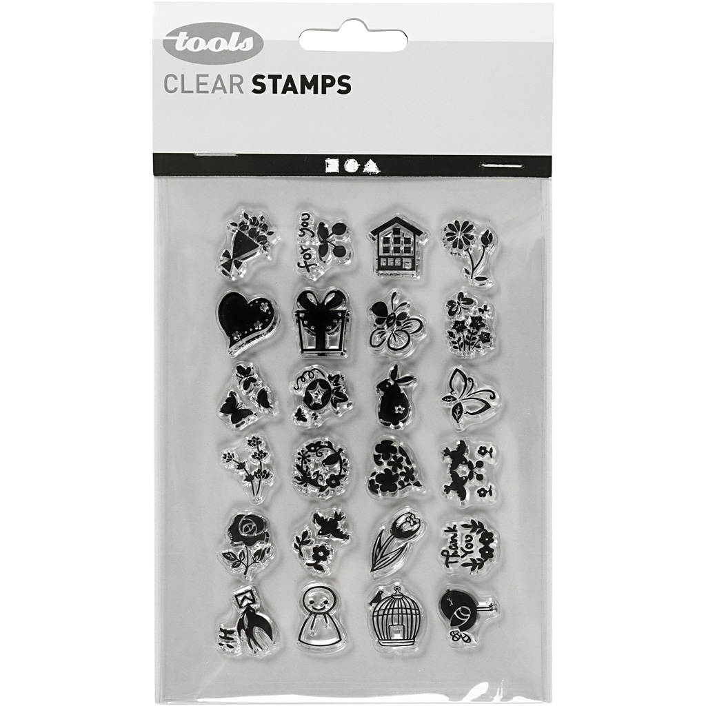 Sheets with different motives of transparent silicone. Mounted on acrylic block (item no. 21586, 21587 or 21588) and used as a stamp. Clear Stamps, small sweet greetings, 11x15,5 cm, 1 sheet