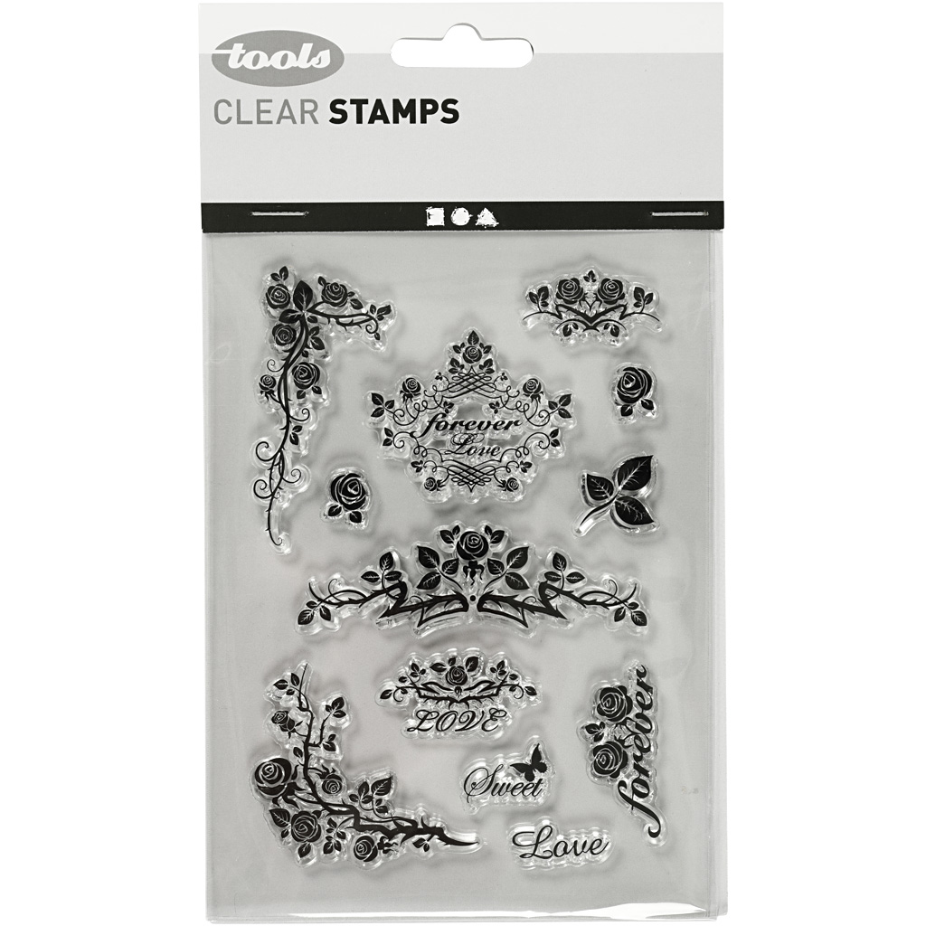 Sheets with different motives of transparent silicone. Mounted on acrylic block (item no. 21586, 21587 or 21588) and used as a stamp. Clear Stamps, forever, 11x15,5 cm, 1 sheet