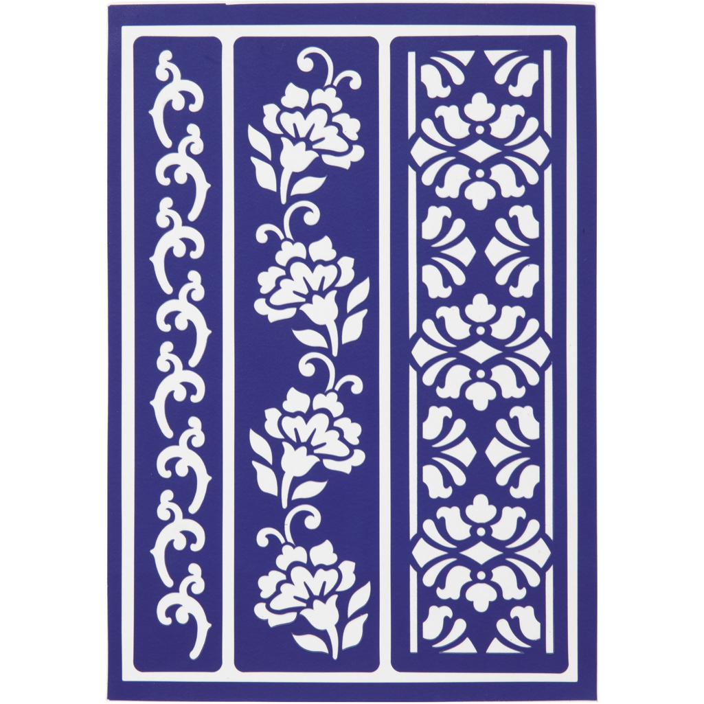 Self-adhesive stencil sheet, suitable for paper, glass, wood, porcelain, etc. Each sheet consists of several motifs to be used separately. Flexible Stencil , flowery borders, 21x14,8 cm, 1 pc