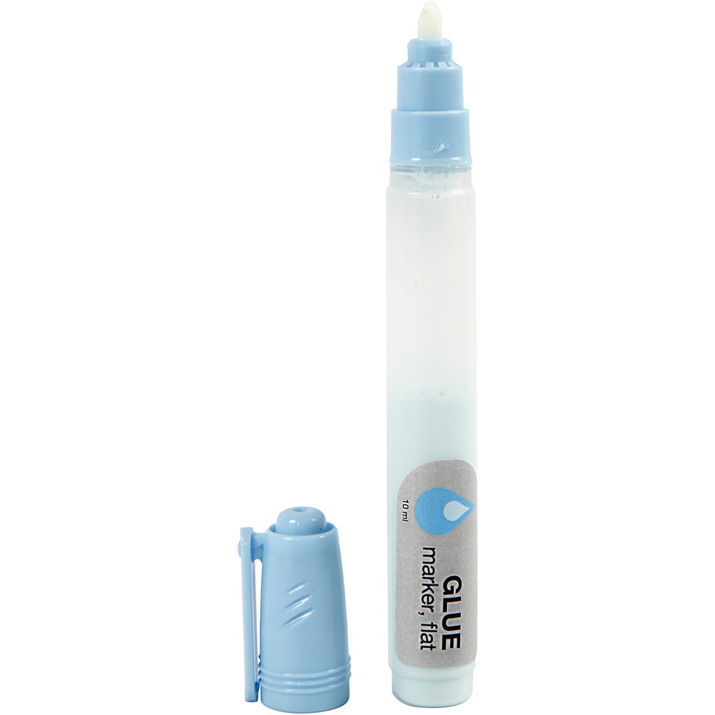 Glue marker with flat felt tip. Suitable for gluing smaller details on paper, cardboard, etc. Ideal for scrapbooking, paper decorations, glue foil decoration, such as stamp lining and effects with, for example, glitter and sequins. Glue Marker, 10 g, 1 pc
