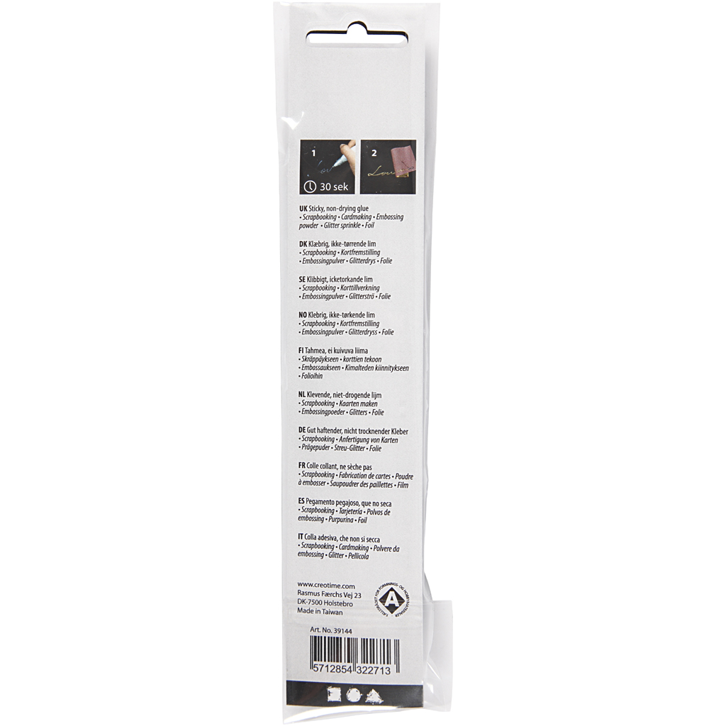 Glue pen with round ball tip. Suitable for gluing small details on paper, cardboard, etc. Ideal for scrapbooking, paper decorations, glue foil decoration and effects with glitter, sequins and the like. Drying up clearly. Used at a fixed pressure on t. Glue pen, 10 g, 1 pc