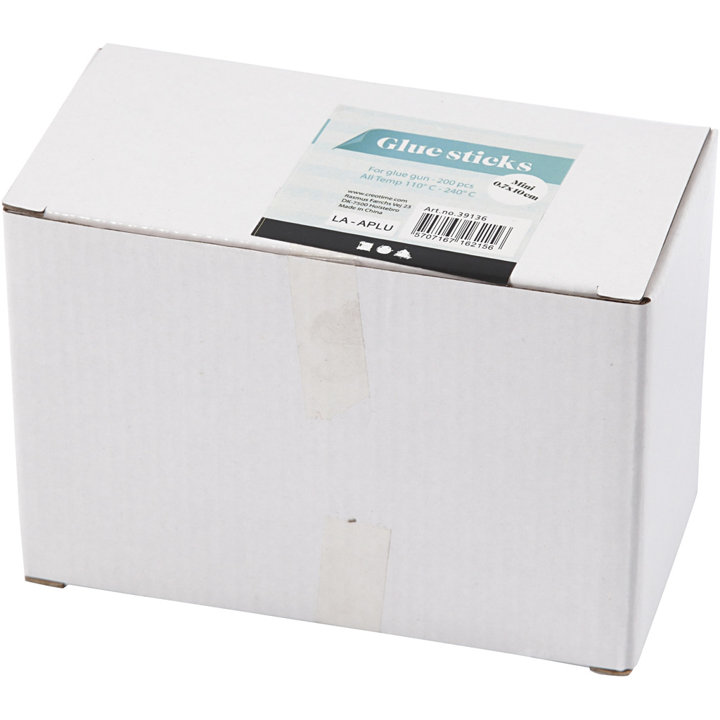 Glue sticks for mini glue guns that bring creative ideas to life. Suitable for both high and low temperatures. Glue Sticks Mini, L: 10 cm, dia. 7 mm, 200 pc/ 1 pack