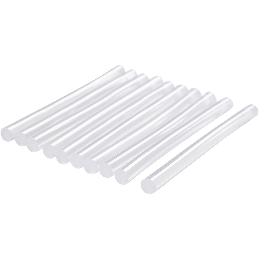 Glue sticks for mini glue guns that bring creative ideas to life. Suitable for both high and low temperatures. Glue Sticks Mini, L: 10 cm, dia. 7 mm, 10 pc/ 1 pack