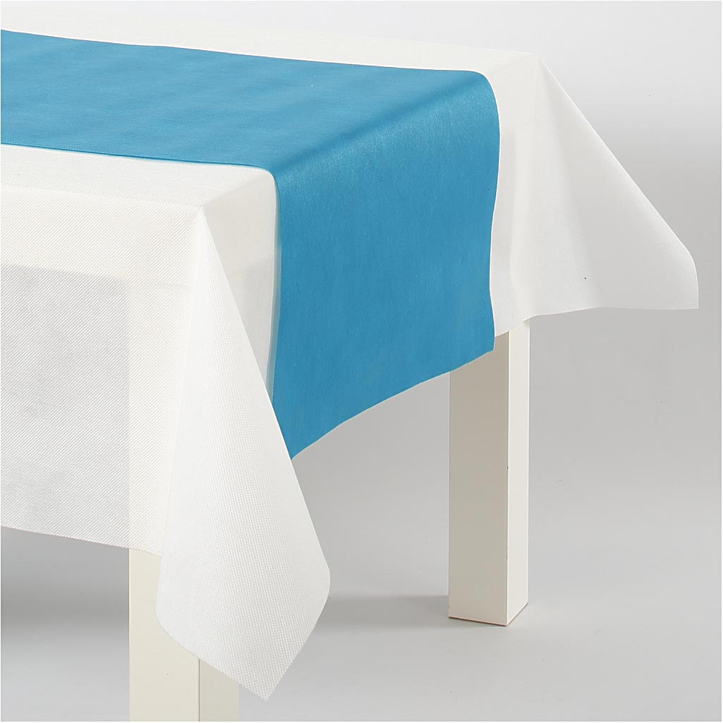 One coloured table runner made from polypropylene (synthetic fibers). Imitation Fabric Table Runner, turquoise, W: 35 cm, 70 g, 10 m/ 1 roll