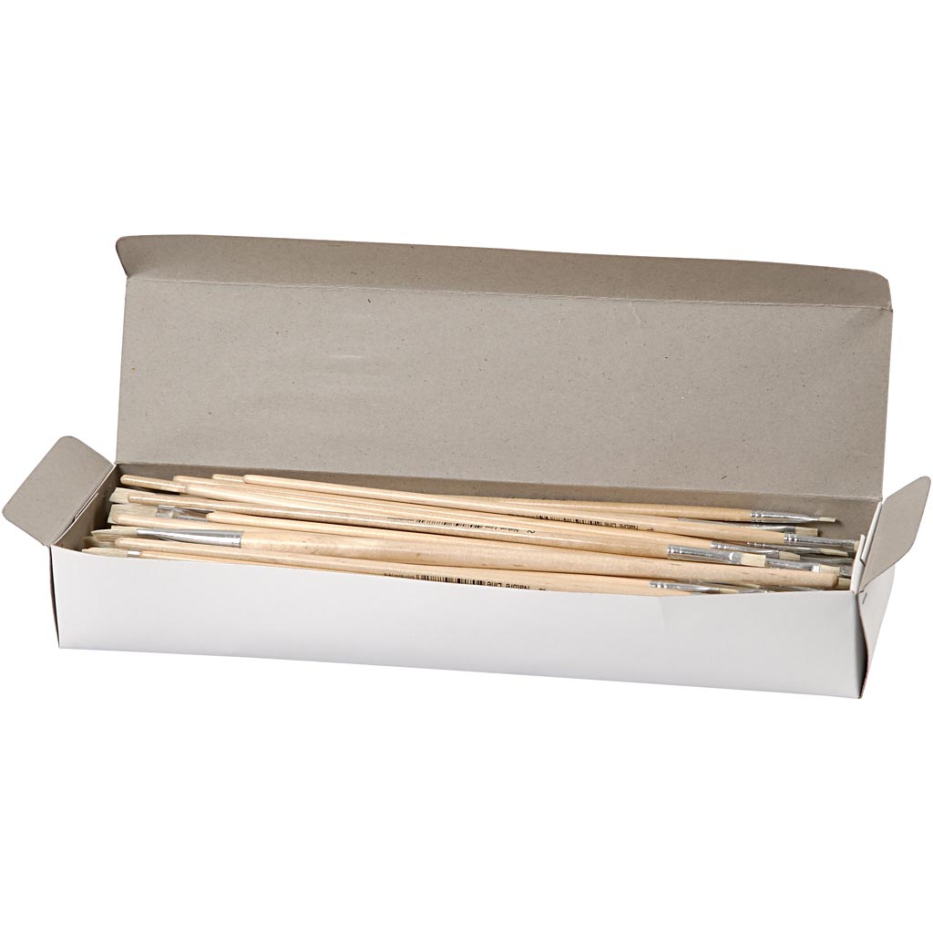 Flat hog-hair bristle brush with wooden handle - ideal for use with heavy-bodied paints. Nature Line Brushes, L: 27,5-33 cm, W: 5-19 mm, flat, 64 pc/ 1 pack