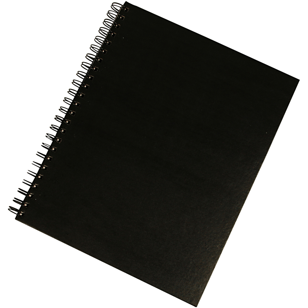Spiral bound notebook with 50 white unruled sheets and black cover. Notebook, black, size 23x30,5 cm, 120 g, 1 pc