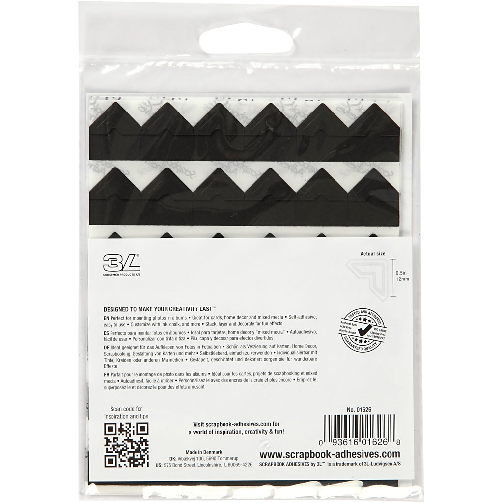 Self-adhesive paper photo corners, for displaying photographs. from 3L. Photo Corners, black, W: 10 mm, 110 g, 108 pc/ 1 pack