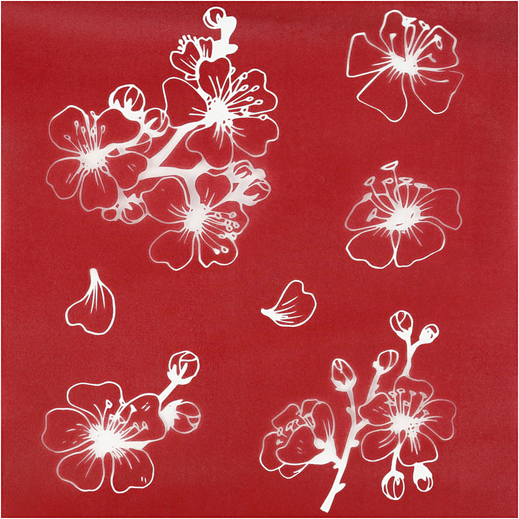 Screen stencils with adhesive side for dabbing printing on textiles, paper, canvas, wood etc. Very detailed motif. Clean with water and stencil can be reused. Screen Stencils, flowers, 20x22 cm, 1 sheet