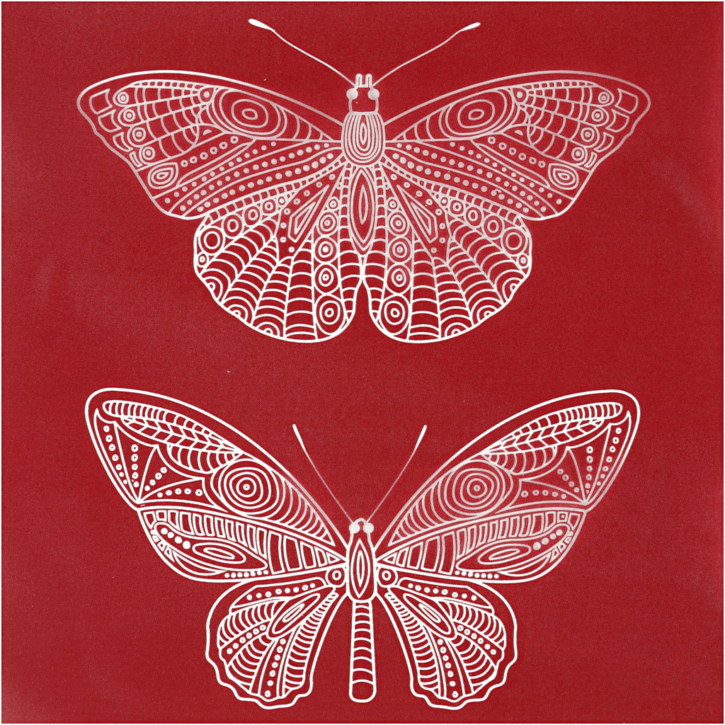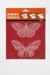 Screen stencils with adhesive side for dabbing printing on textiles, paper, canvas, wood etc. Very detailed motif. Clean with water and stencil can be reused. Screen Stencils, butterfly, 20x22 cm, 1 sheet
