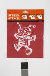 Screen stencils with adhesive side for dabbing printing on textiles, paper, canvas, wood etc. Very detailed motif. Clean with water and stencil can be reused. Screen Stencils, robot, 20x22 cm, 1 sheet