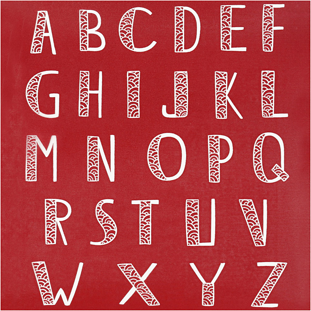 Screen stencils with adhesive side for dabbing printing on textiles, paper, canvas, wood etc. Very detailed motif. Clean with water and stencil can be reused. Screen Stencils, alphabet, 20x22 cm, 1 sheet