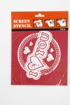 Screen stencils with adhesive side for dabbing printing on textiles, paper, canvas, wood etc. Very detailed motif. Clean with water and stencil can be reused. Screen Stencils, I love you, 20x22 cm, 1 sheet