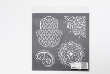 Plastic templates with pattern. Wash immediately after use with lukewarm water. Stencil, ethnic motives, size 30,5x30,5 cm, thickness 0,31 mm, 1 sheet