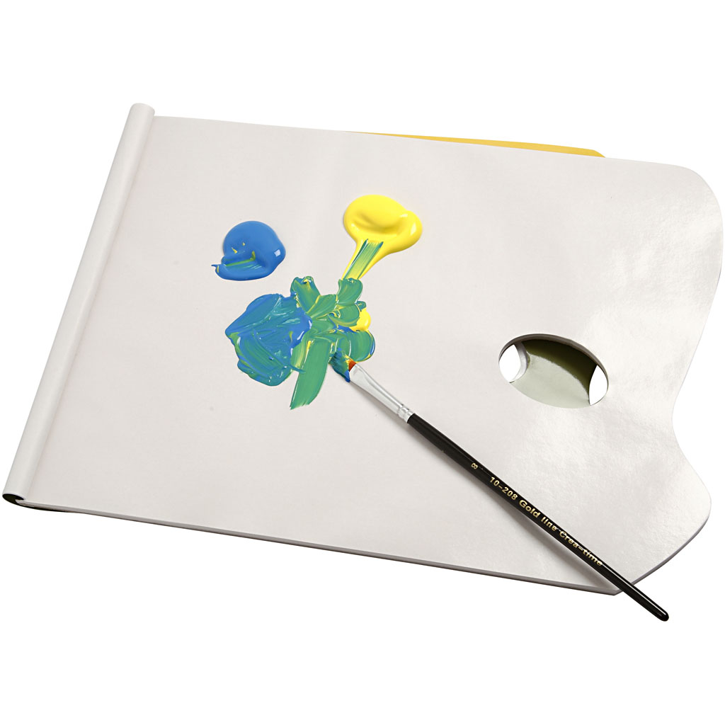 Palette in the form of a book with waxed paper sheets and special thumbholes. 40 sheets to tear out. Tear-Off Palettes, white, L: 31 cm, W: 23 cm, 1 pc