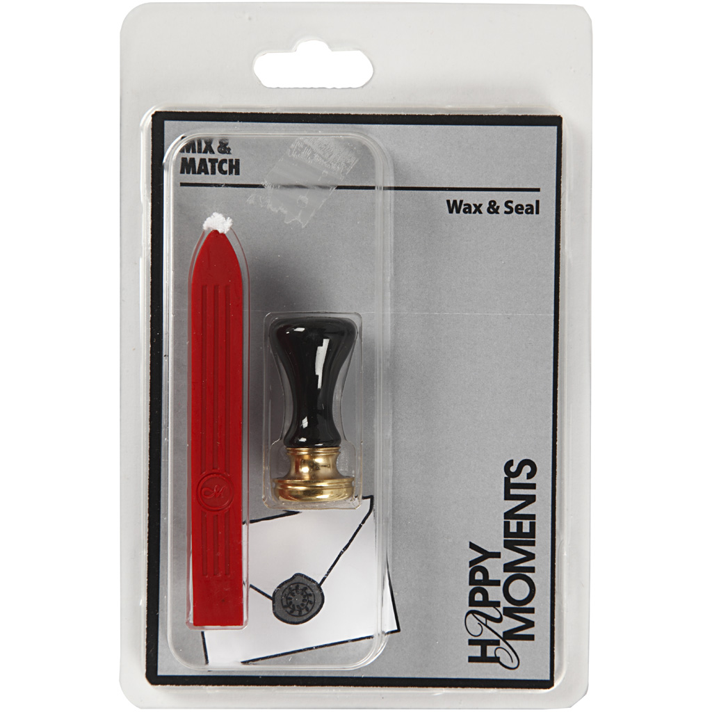 Starter set with lacquer with wick, handle and seal with motif of laurel wreath. The lacquer is melted / dipped in the place you want to decorate and print the motif in the warm lacquer. Enough for approx. 10 seals. Wax Seal Set, red, dia. 17 mm, 1 set