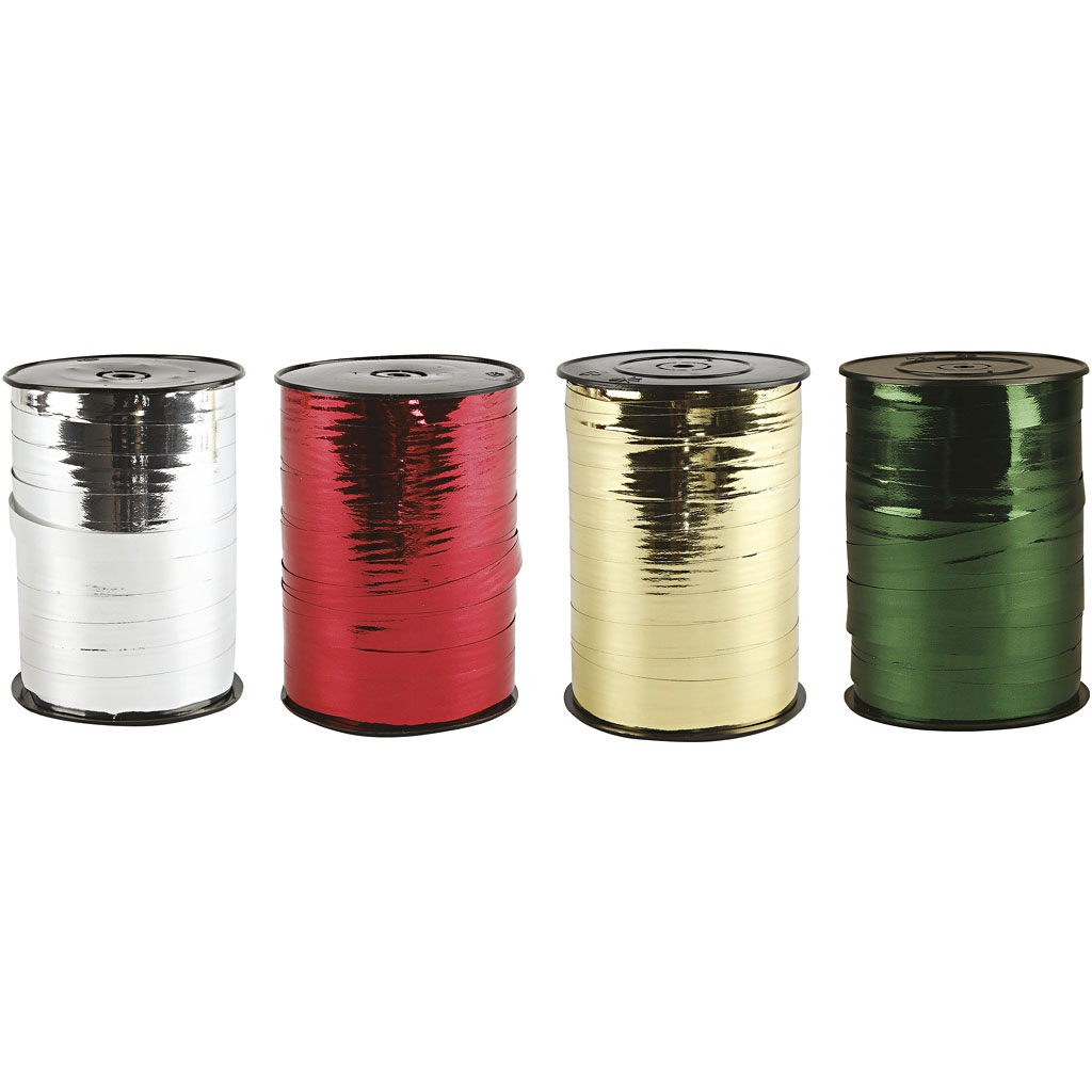 This curling ribbon has a shiny metallic finish. Curling Ribbon, W: 10 mm, glossy, 4x250 m/ 1 pack