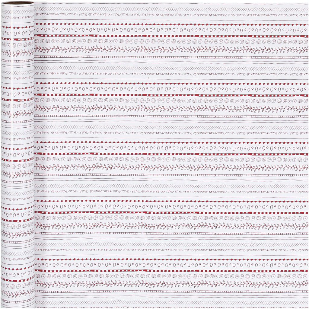 High-quality wrapping paper with motifs in block colours. Gift wrap, red, white, doodles, W: 70 cm, 80 g, 4 m/ 1 roll