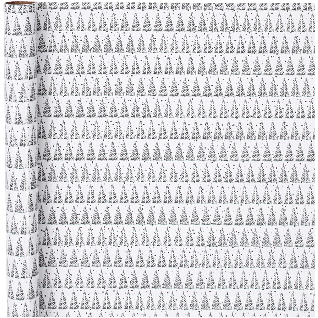High-quality wrapping paper with motifs in block colours. Gift wrap, green, white, pine tree, W: 70 cm, 80 g, 4 m/ 1 roll