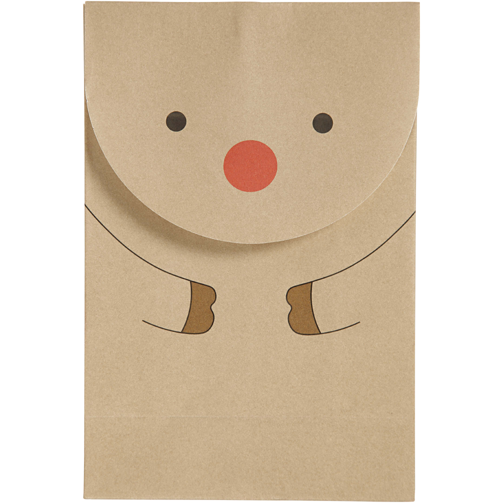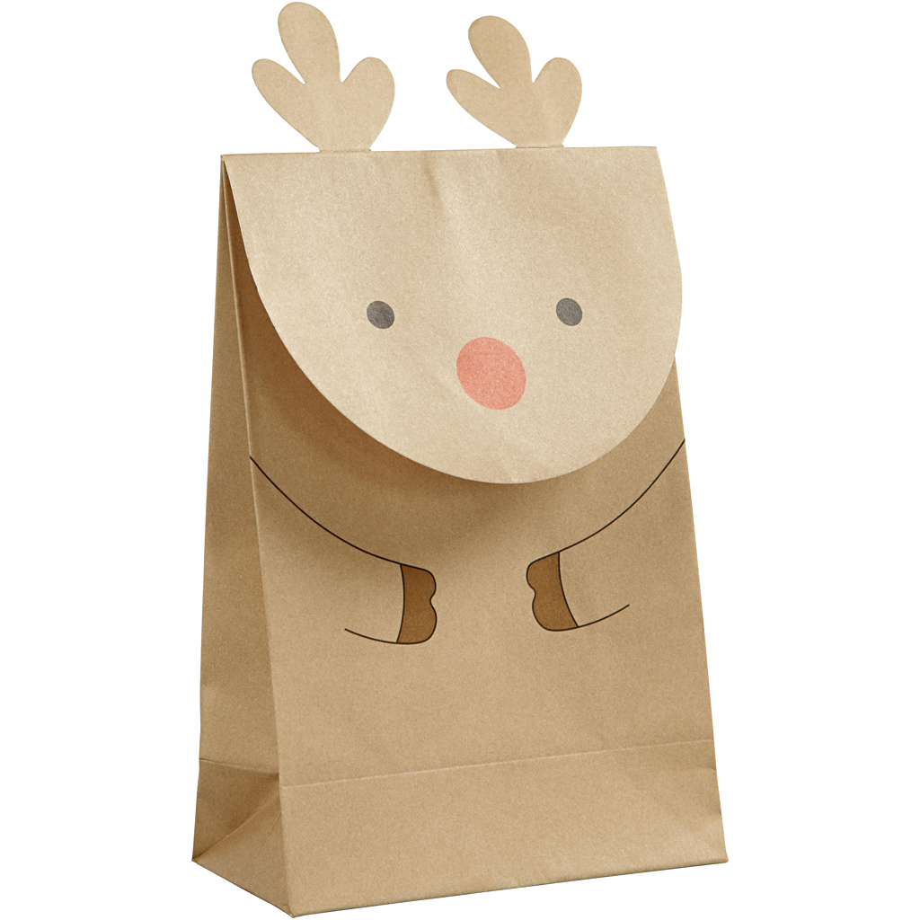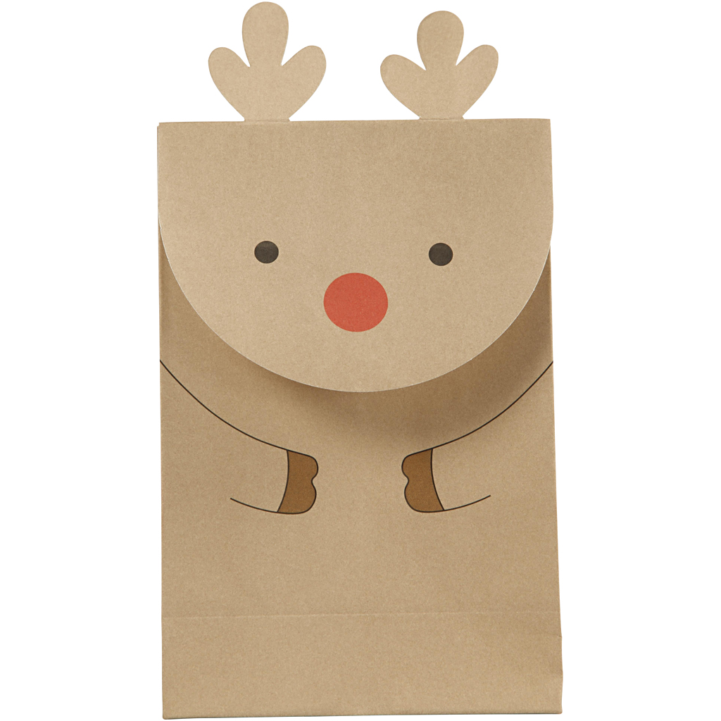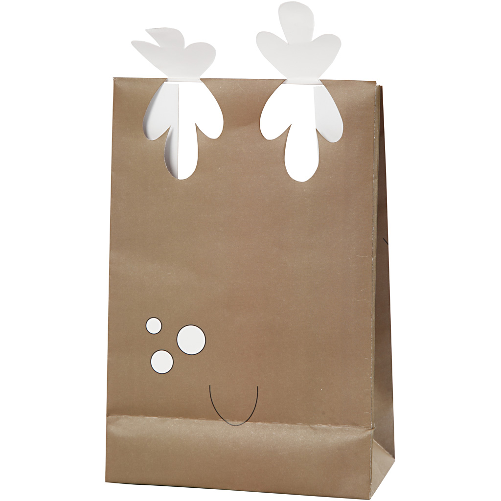 Block Bottom Bag of quality paper with motif. Paper Bag, brown, reindeer, H: 18 cm, size 6x12 cm, 80 g, 6 pc/ 1 pack