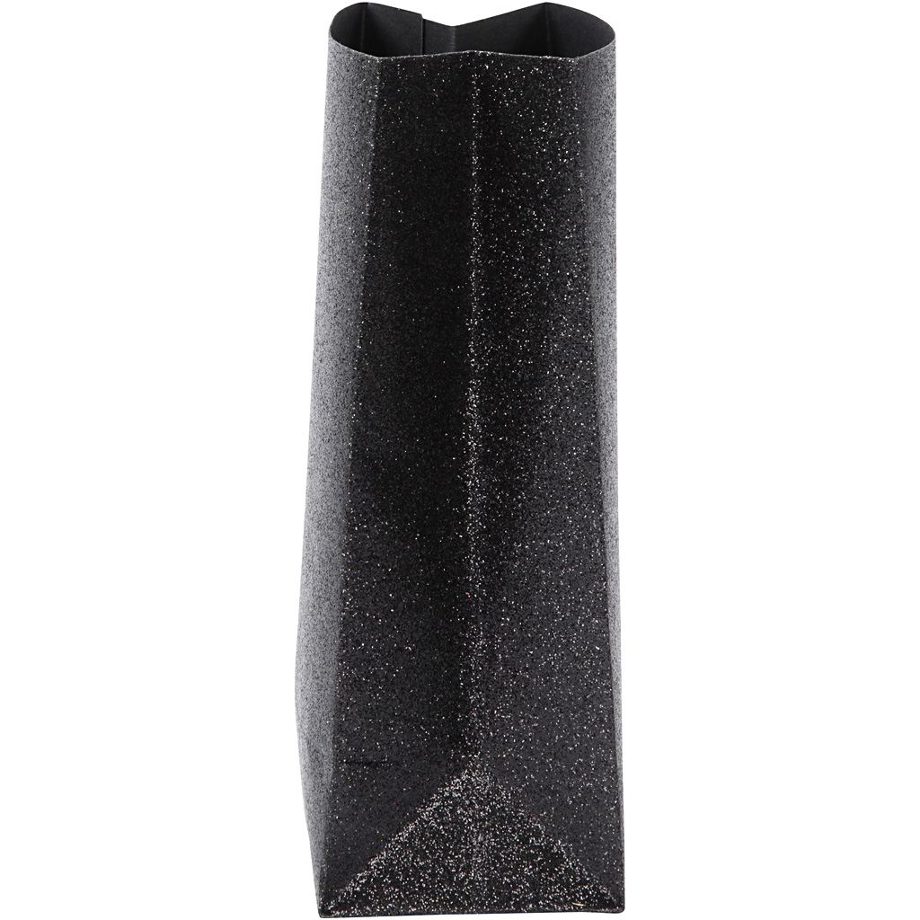 Sturdy block-bottom quality paper bag from Vivi Gade, which has glitter everywhere on the outside and a white inside. Paper Bag, black, size 6x9 cm, H: 17 cm, 170 g, 8 pc/ 1 pack