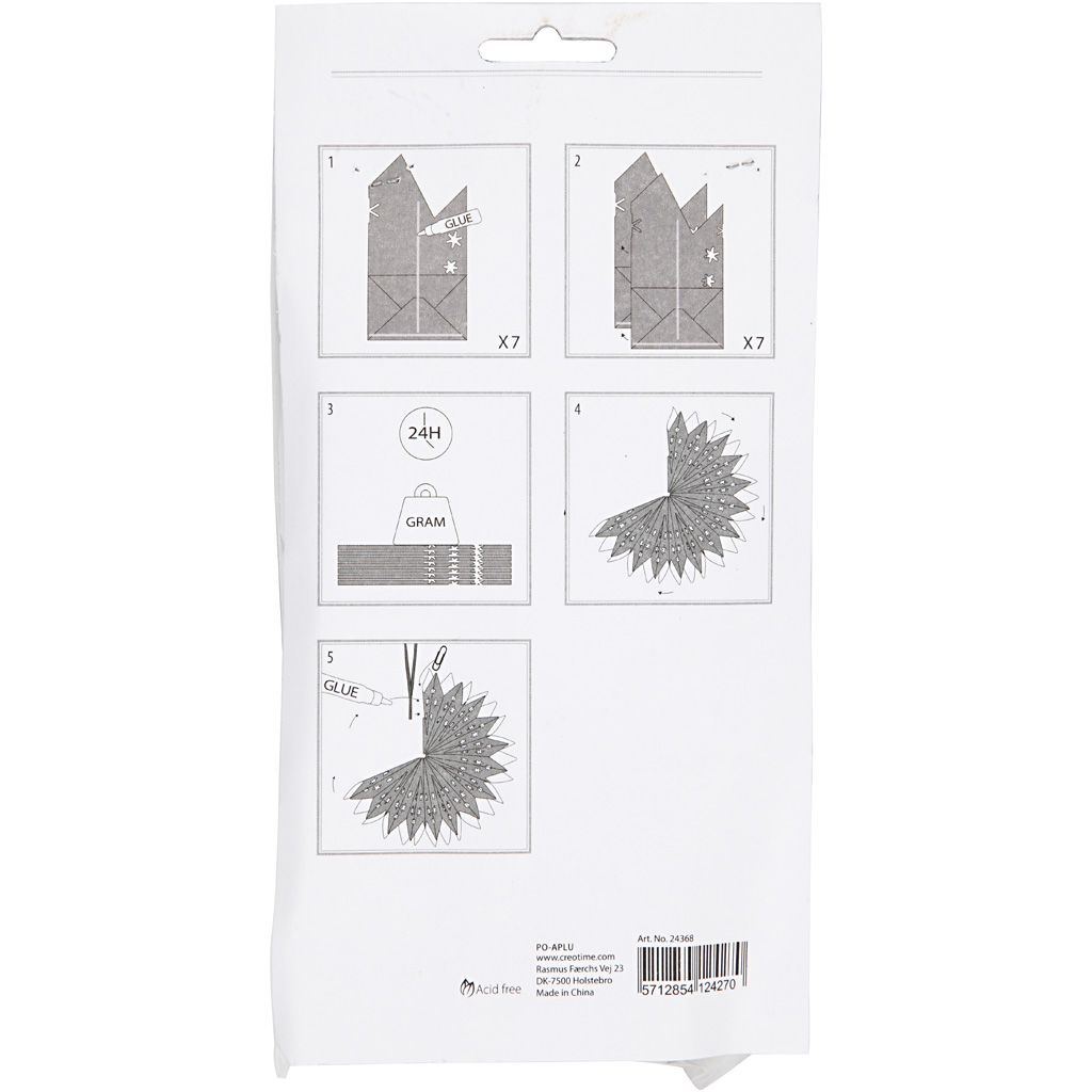 Kit with all the materials needed to make a paper star with punched out small stars. Diameter of finished star is 33cm. Instructions included. Contents: 7 paper bags, 3m double-sided power-tape, 2m grosgrain ribbon for suspension. Paper Bag Star, red, 200 g, 1 set