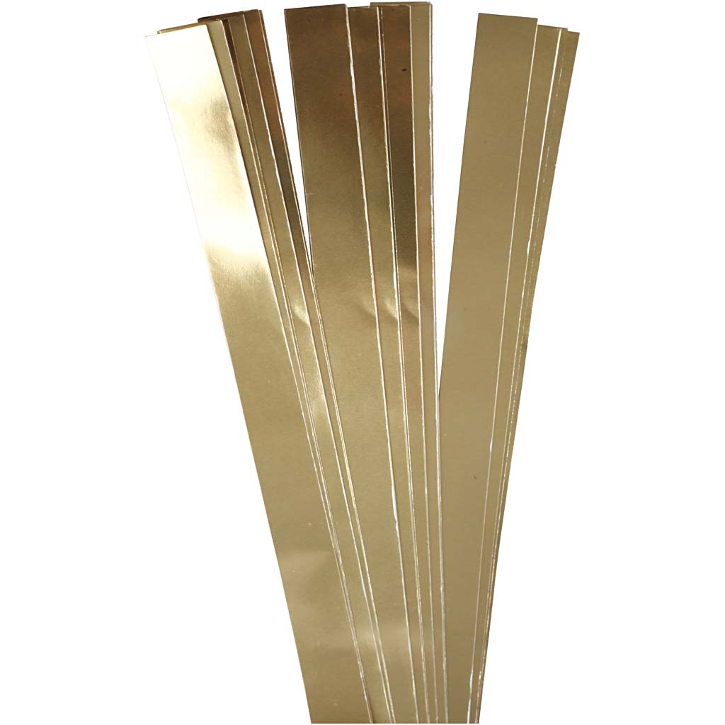 Traditional paper star strips for making folded stars - the diameter indicates the finished size of the folded star. Paper Star Strips, gold, L: 73 cm, dia. 11,5 cm, W: 25 mm, 100 strips/ 1 pack
