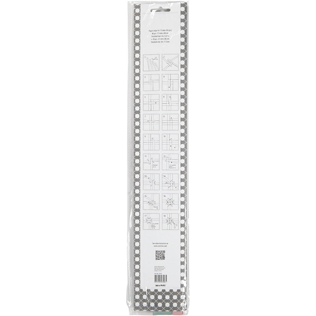 Double-sided paper star strips from Vivi Gade Design. The diameter indicates the star's final size. Instructions included. Pack with 2 colours and two widths. 40 strips that are 15mm wide and 20 strips that are 25mm wide. Paper Star Strips, W: 15+25 mm, D 6,5+11,5 cm, 60 strips/ 1 pack