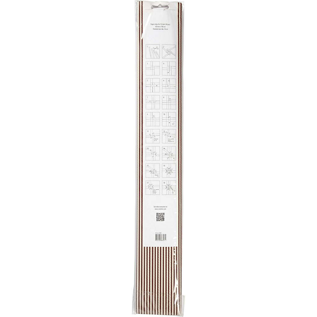 Double-sided paper star strips from Vivi Gade Design. The diameter indicates the star's final size. Instructions included. Pack with 5 different designs. Paper Star Strips, red, white, L: 100 cm, dia. 18 cm, W: 40 mm, 40 strips/ 1 pack