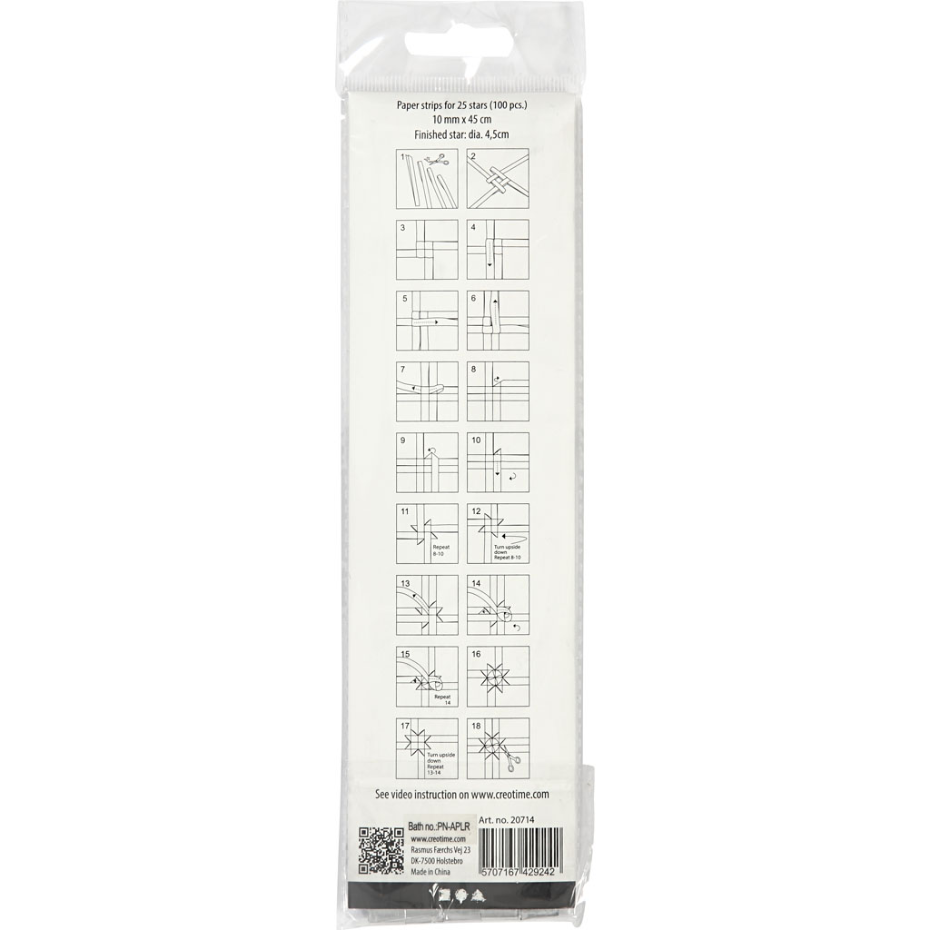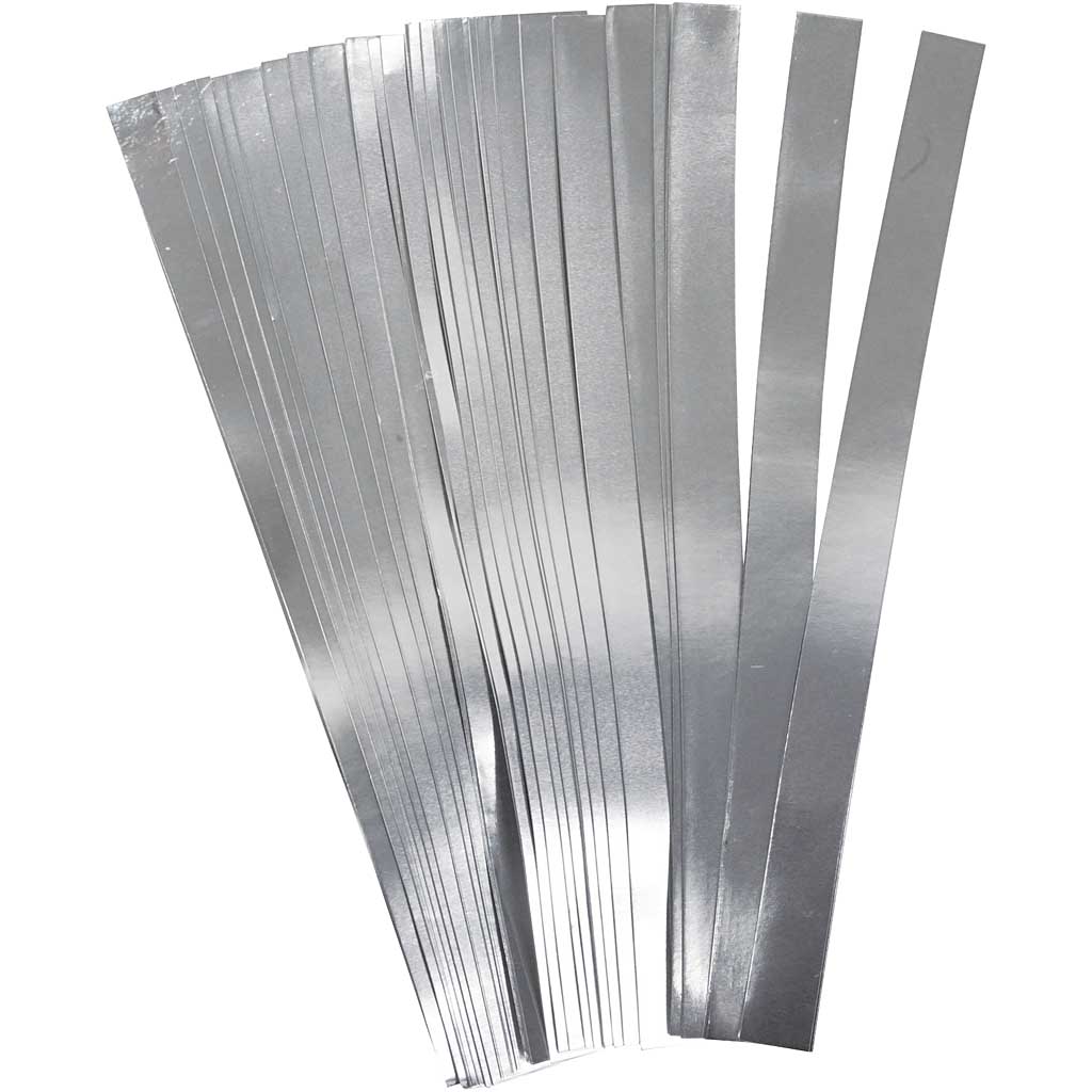Traditional paper star strips for making folded stars - the diameter indicates the finished size of the folded star. Paper Star Strips, silver, L: 45 cm, dia. 4,5 cm, W: 10 mm, 100 strips/ 1 pack
