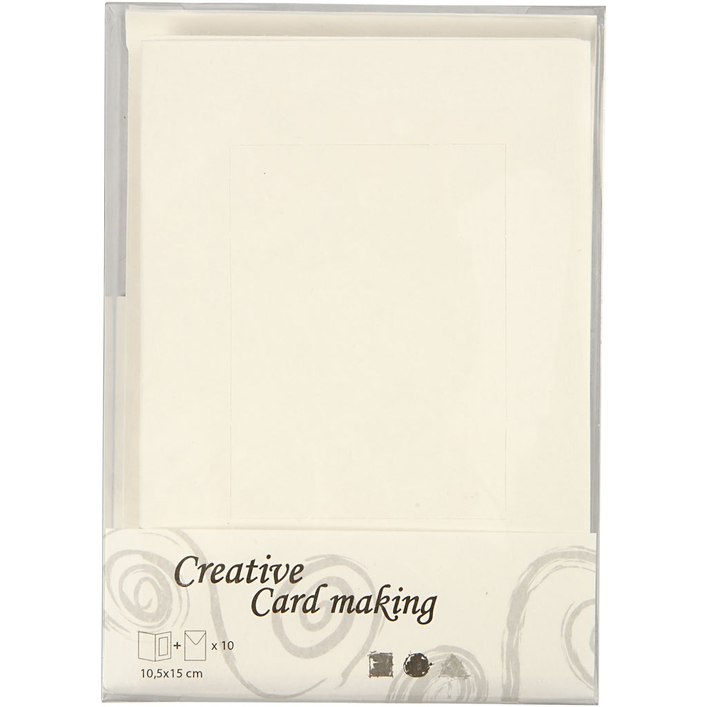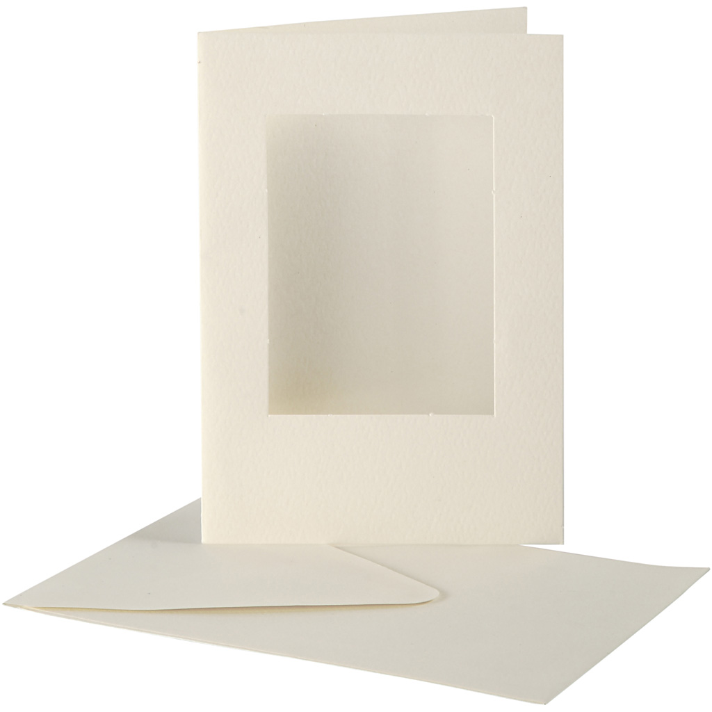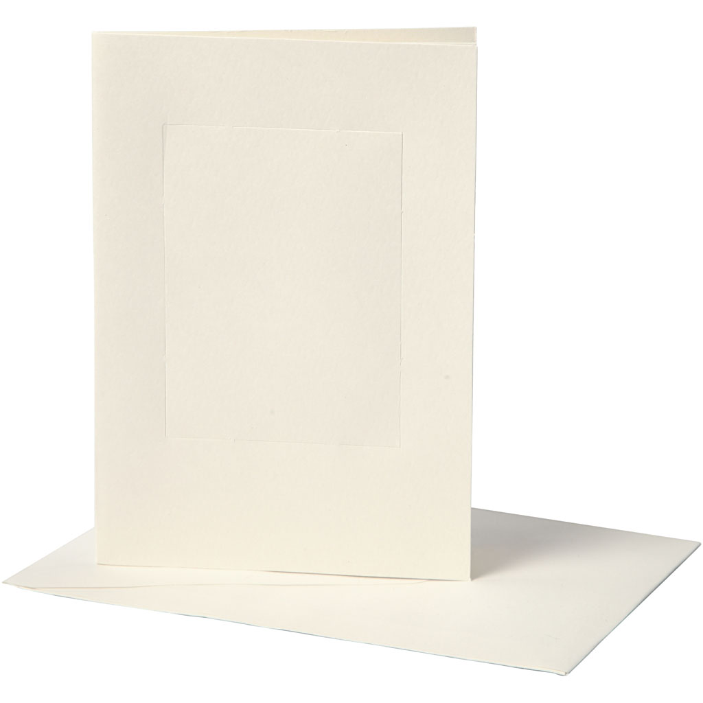 Double blank cards (220g), embossed with a beautiful hammer finish, aperture with gold fame, envelope and backside for passepartout included. 220 g. Passepartout Card, off-white, rectangular, card size 10,5x15 cm, envelope size 11,5x16,5 cm, 10 set/ 1 pack